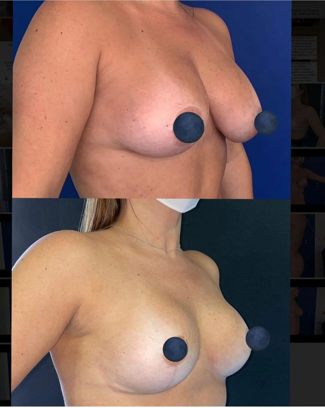 Las dos pequeñas cicatrices quedan en la areola y se camuflan satisfactoriamente en este lugar. (X)